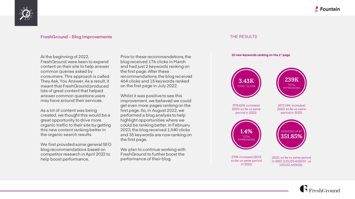 How content creation was a key driver for FreshGround’s organic traffic and improved rankings.