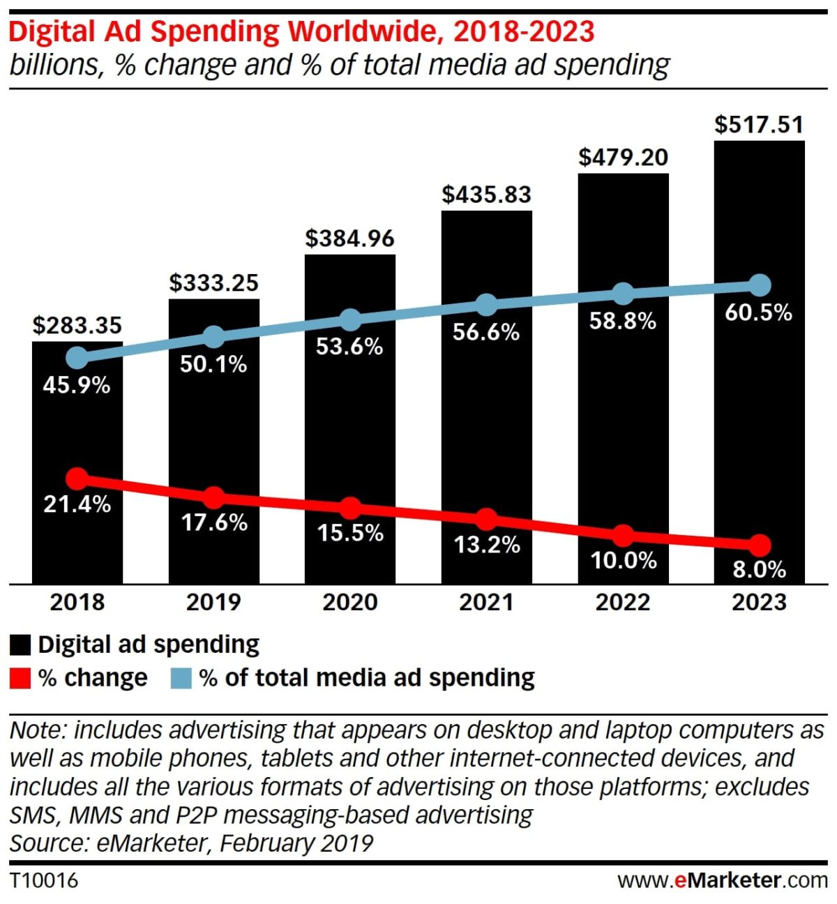 Advertisers are spending less each year on traditional advertising channels and investing more in digital media.